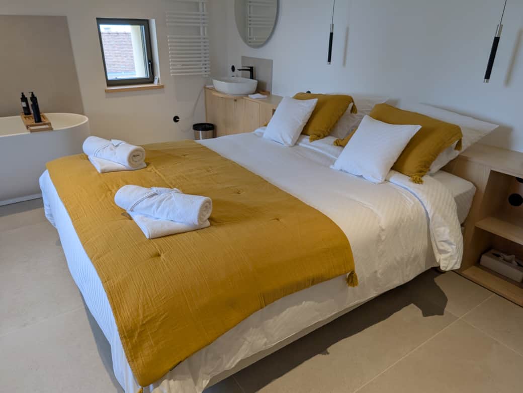 Laissez vous séduire par l’atmosphère paisible de notre chambre "Champs Fleuris", un cocon de tranquillité. Située côté campagne, elle offre une vue dégagée sur les champs environnants, pour un réveil en douceur au cœur de la nature.